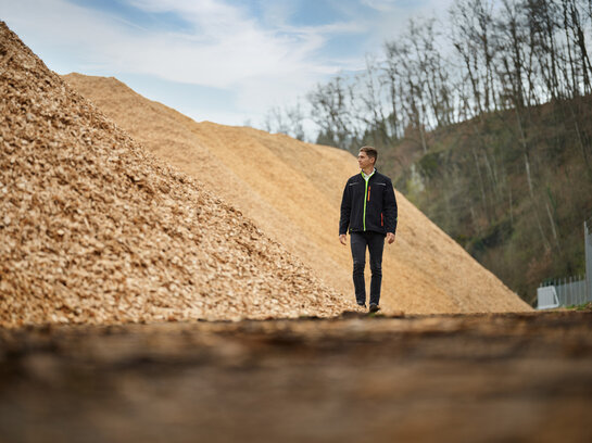 Kaspar Henschke :Le mie mansioni sono varie e mi divertono molto. Essendo responsabile dell'acquisto del cippato, discuto i prezzi con i fornitori. Pianifico anche il personale per il cantiere del legno, dove il cippato viene consegnato con i camion e portato ai nostri impianti di produzione. Supervisiono il layout - cioè l'ingresso e l'uscita del cippato - in coordinamento con lo stock di legno tondo, la nostra seconda fonte di materia prima. Infine, mi occupo delle mansioni di controllo di gestione: ad esempio, tengo d'occhio il rispetto della nostra pianificazione annuale, valuto i costi e mi assicuro che il nostro legno provenga effettivamente da un'attività forestale certificata FSC o PEFC.
