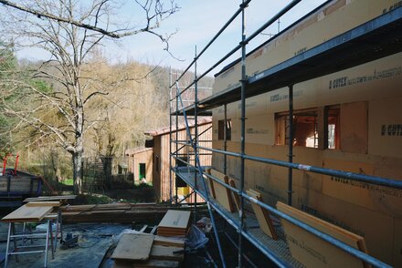 La specificità di questo progetto risiede nella natura isolata del villaggio di Montbel e nell'assenza di reti di comunicazione. In queste condizioni, l'approvvigionamento dei materiali - assicurato da Chausson Matériaux - e i lavori hanno rispettato il ritmo delle stagioni, in linea con lo stile di vita alternativo degli occupanti. In linea con l'economia circolare, il direttore dei lavori ha utilizzato gli alberi abbattuti nei cantieri degli chalet come parti strutturali, dopo averli segati e piallati con una sega e una piallatrice mobili. Il progetto Montbel Arbre è un ottimo esempio di combinazione tra una costruzione che preserva le risorse naturali e materiali isolanti ad alte prestazioni.