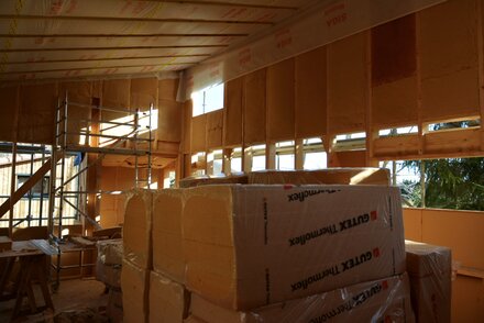 Destinato a ospitare gruppi in visita, corsi di formazione e seminari, il grande edificio è stato sottoposto a una ristrutturazione che lo ha portato dalla categoria energetica G alla categoria energetica C. Le falde del tetto sono state isolate con pannelli isolanti flessibili in fibra di legno Thermoflex da 120 mm in autocostruzione, dopo la rimozione del vecchio isolamento sintetico. L'installazione di una barriera al vapore a marchio SIGA garantisce le prestazioni dell'isolamento.
