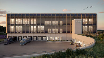 Il nuovo campus logistico di Weleda ha ottenuto la pre-certificazione della Società tedesca per l'edilizia sostenibile (DGNB) al più alto livello di valutazione, il platino, nonché il primo posto nel Premio polis 2024 nella categoria Realtà ecologica. Foto: Michelgroup