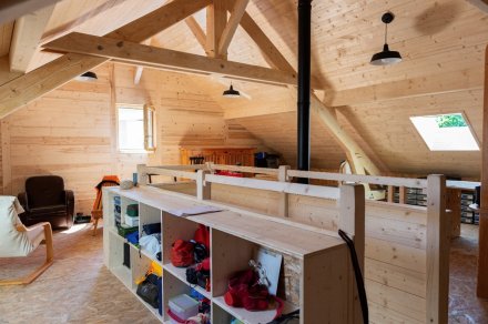 Grâce à l’enveloppe de haute qualité du bâtiment avec des menuiseries triple vitrage installées sansponts thermiques, cette maison individuelle construite à Lans-en-Vercors selon la norme RT2012 nerequiert que peu de chauffage. Durant les mois d’hiver, un poêle à granulés de bois installé au rez-dechaussée suffit pour chauffer les 140 m2 de surface habitable répartie sur deux niveaux. Le dispositifde ventilation est aussi équipé d’un double échangeur de chaleur qui récupère une grande partie de lachaleur de l’air sortant. Cela permet une exploitation économique de l’habitation à faible coût tout enminimisant les émissions de CO2. De plus, l’utilisation maximale du bois en tant que matériau deconstruction, de la charpente du bâtiment à l’aménagement intérieur en passant par l’isolation et lebardage, contribue activement à protéger le climat. En effet, le bois est une ressource renouvelable quipossède la propriété naturelle de capter le carbone. Cette maison indivi