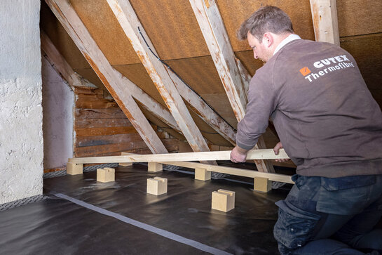 Stampio è la soluzione efficiente per l'isolamento del soffitto dell'ultimo piano e Gutex semplifica al massimo la progettazione e l'esecuzione: i testi di gara facilitano la pianificazione e costituiscono la base per un'esecuzione professionale. I partner specializzati che non hanno ancora completato il corso di certificazione per l'insufflaggio in Thermofibre possono essere istruiti in loco o hanno accesso a una rete di aziende formate. Inoltre, la tecnologia di applicazione Gutex e il servizio di assistenza sul campo sono disponibili con consigli pratici, per risultati di isolamento ottimali e proprietari di edifici soddisfatti.